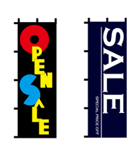 オリジナルデザインでのぼり旗に仕立てて店の周辺などに立てておけば、